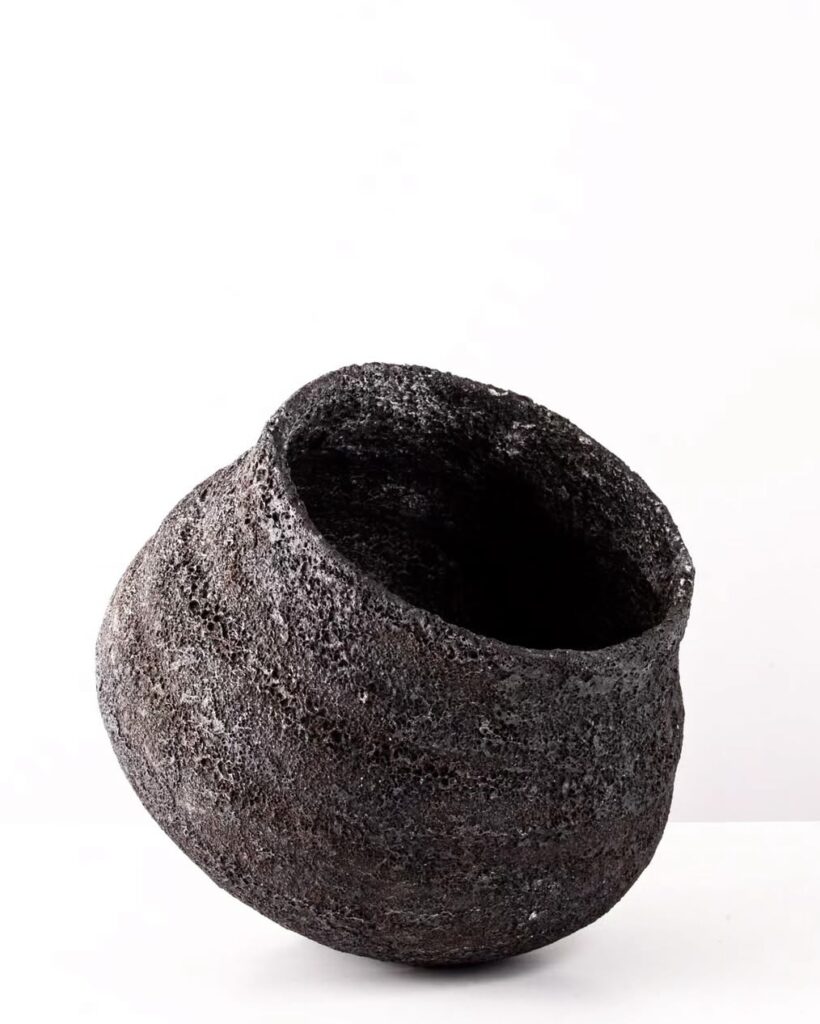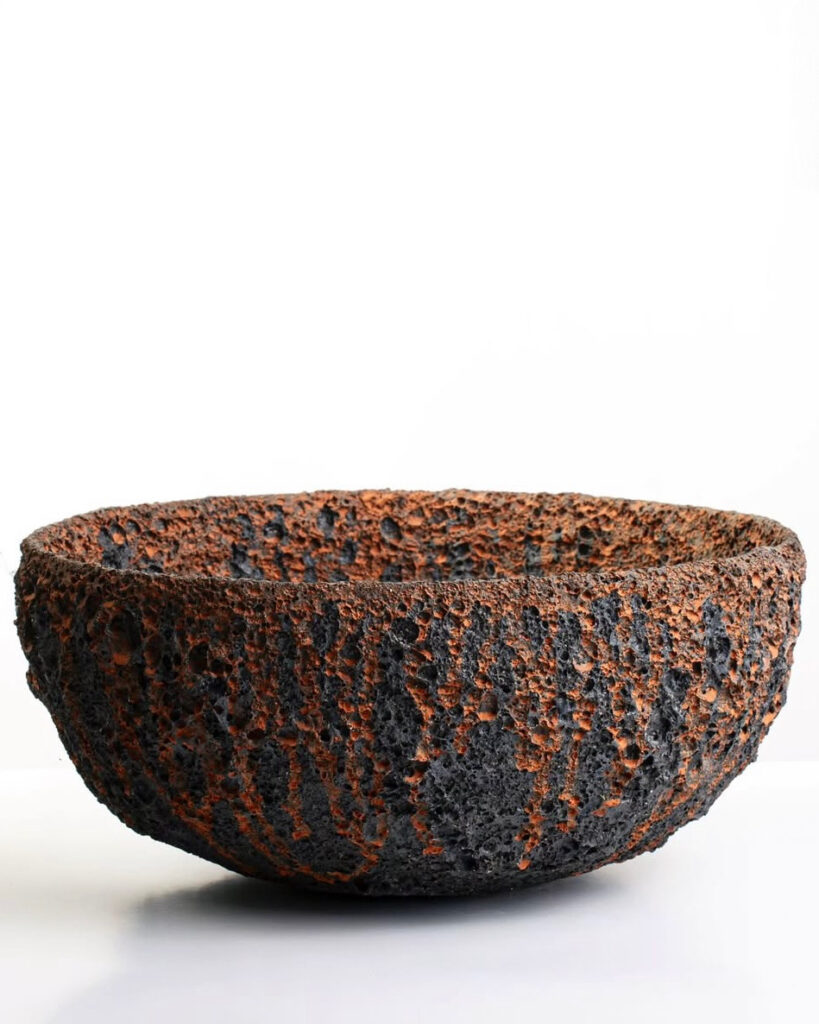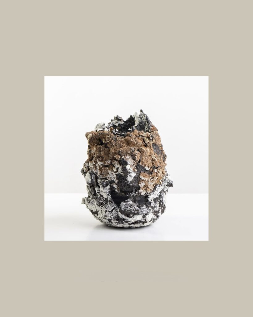 Hoy combina la producción de piezas únicas, la docencia y la exploración de nuevas técnicas y materiales. Rocas, arenas y arcillas brutas forman parte de su investigación actual, en la que busca generar efectos inesperados en el horno y avanzar hacia un lenguaje personal cada vez más propio. Conversamos con él sobre sus inicios, su trabajo actual y la escena de la cerámica en Chile.