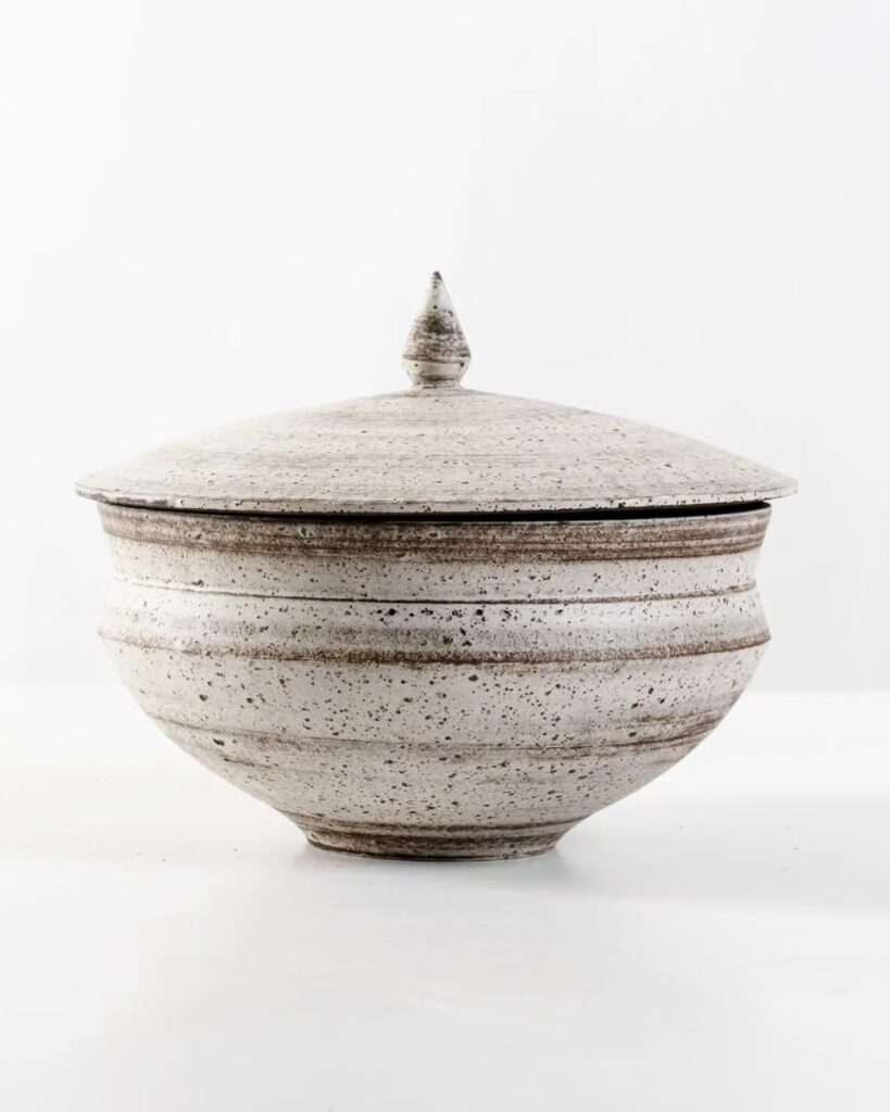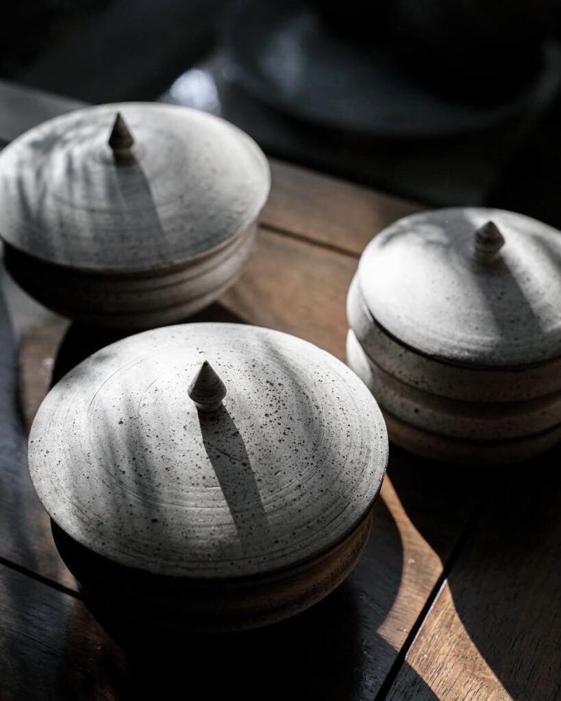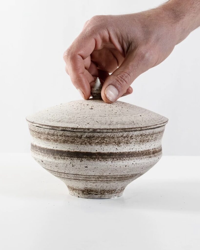 Su formación partió en la Escuela de Oficios Artífices del Fuego, donde descubrió la cerámica tras haber dejado la carrera de diseño. Ahí conoció a su maestro Francisco Olivares, con quien trabajó algunos años haciendo clases y aprendiendo de esmaltes y de cómo llevar un taller. Después decidió armar su propio espacio, donde poder explorar, enseñar y también empezar a producir en serie. “Luego partí a Japón, donde estuve siete meses trabajando con Ryota Aoki. Ya de vuelta en Chile seguí con lo mismo, pero con una visión más clara”, cuenta.