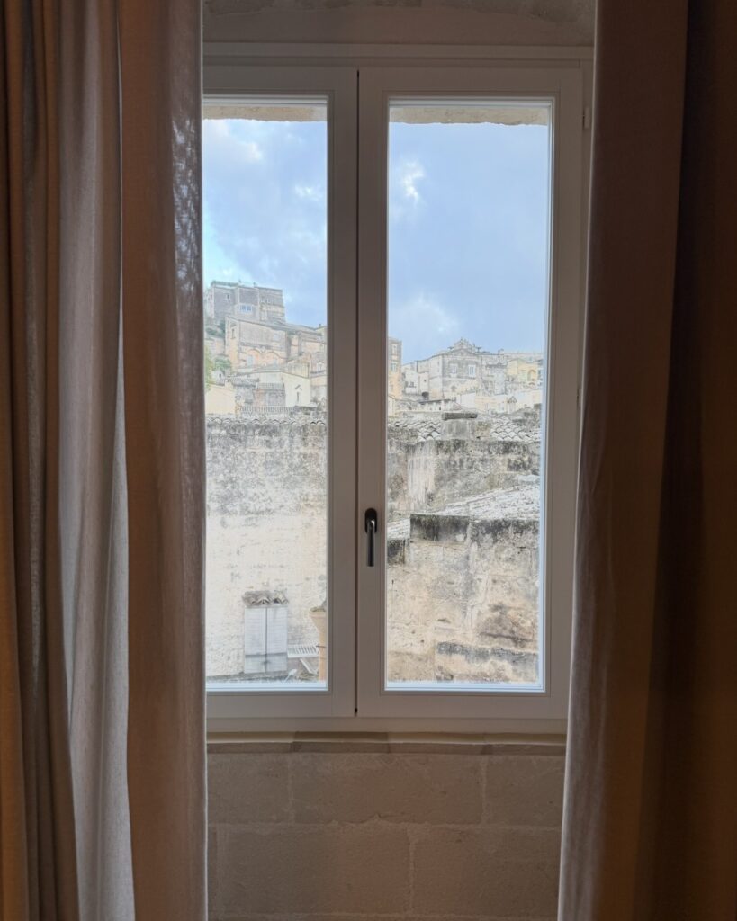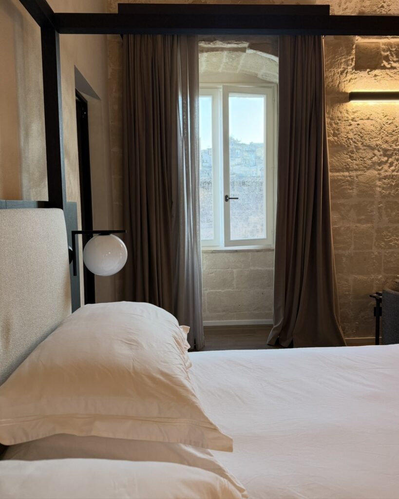 Nosotros nos quedamos en el hotel Vetera Matera, que lo recomiendo de todas maneras. Si es posible, elegir una pieza con terraza. Las vistas, especialmente al atardecer, son un espectáculo en sí mismo.