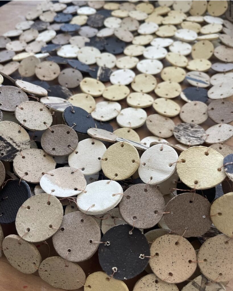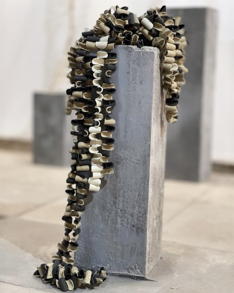 Hoy sus piezas están inspiradas en la naturaleza, en los tonos naturales y las texturas y dice que le atrae lo cálido, lo orgánico, lo imperfecto y lo honesto. Para lograr expresar esto, trabaja principalmente con cerámica gres. “Me inspiran los gestos simples, sutiles y con sentido. La repetición de patrones que luego se unen para formar un todo, las curvas y movimientos que dan vida a la pieza, son para mí parte de esa metamorfosis o alquimia que vive la cerámica: desde la tierra hasta convertirse en obra”, reflexiona.